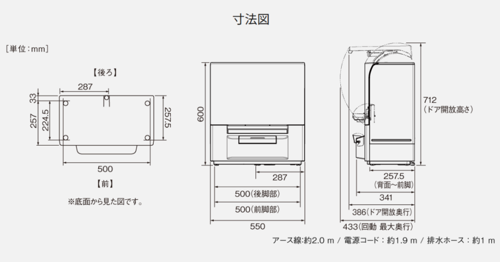 タンク式食洗機は、本体の下部に水を貯めるタンクがある構造上、どうしても背が高くなります。